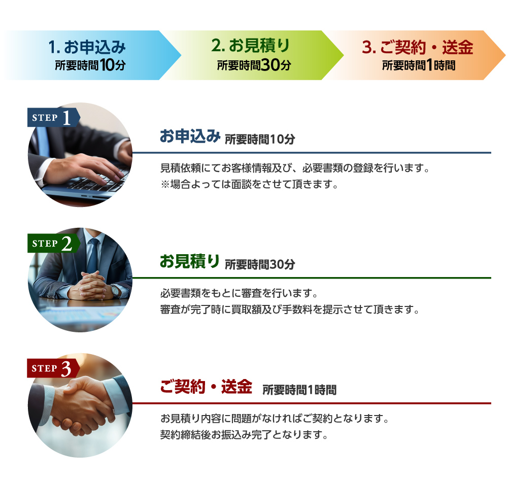 最短で申込から入金まで2時間です。ただし、必要書類がそろっている前提となります。