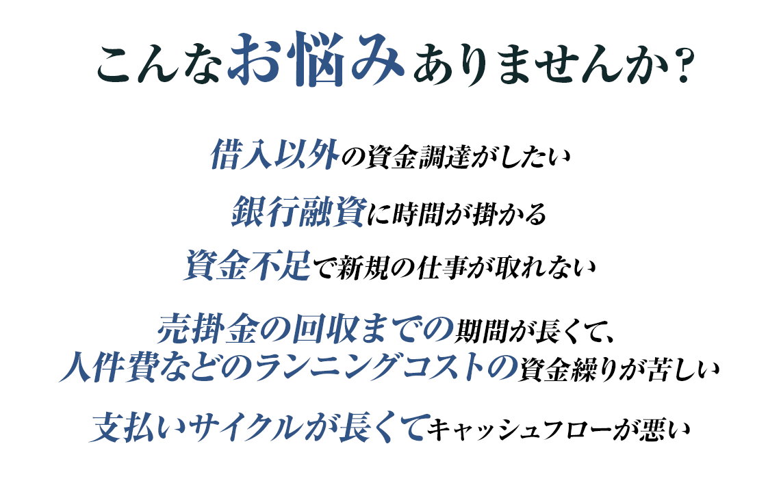 違います。融資とは違い弊社が売掛金を買取する事で資金調達を行えます。